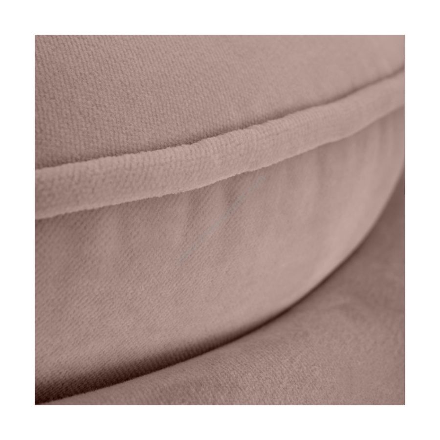 An enchanting upholstery piece fit for glamorous interiors with a luxurious fabric touch that makes it even more unforgetable than its design entails. With a metal trim on the base, this design is as simple as it is charming. This crescent accent chair is an elegant and retro chic piece of furniture inspired by the '60s design legacy.