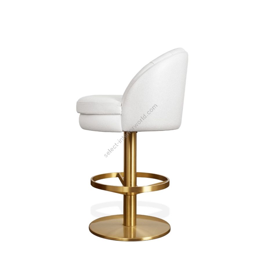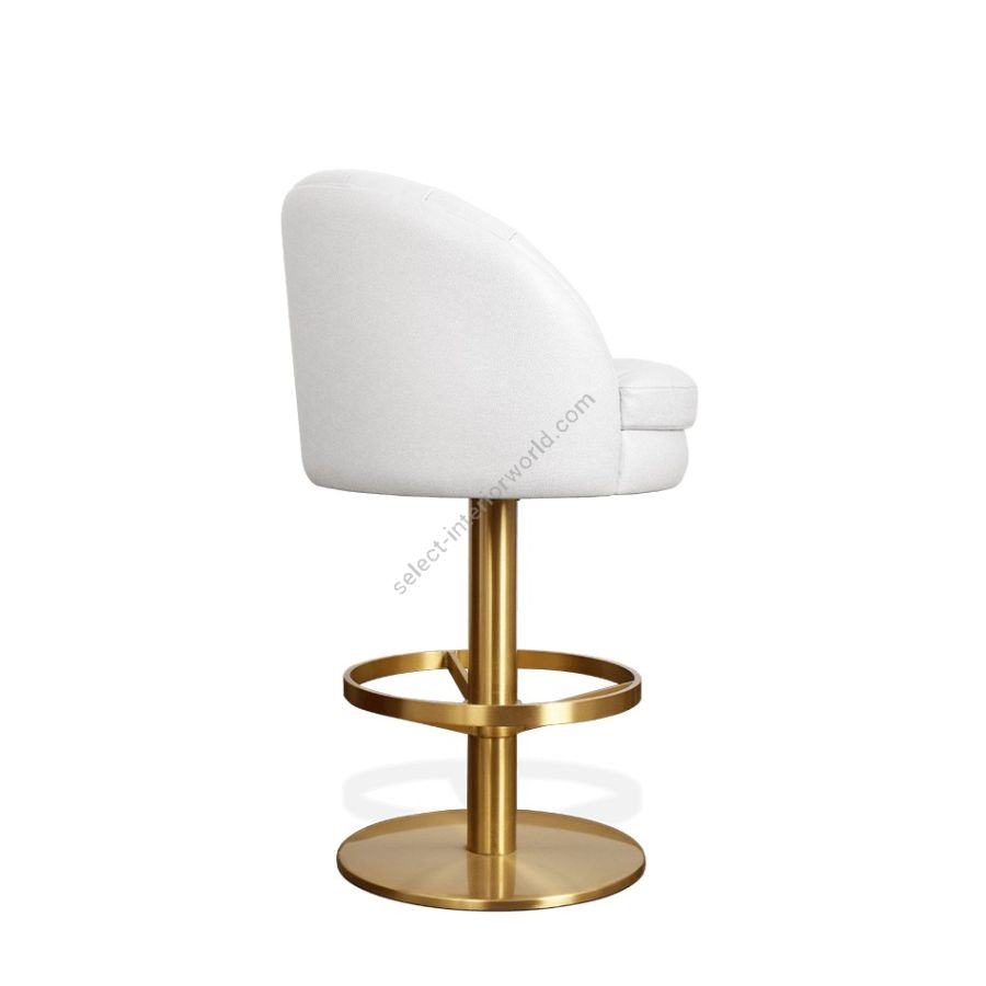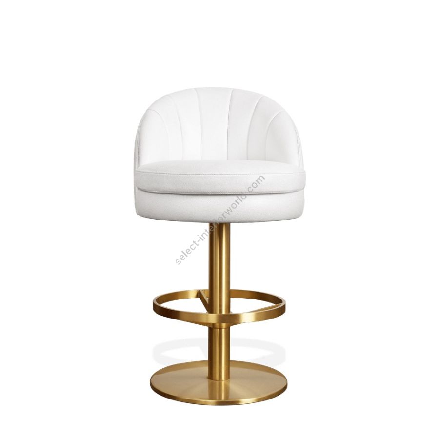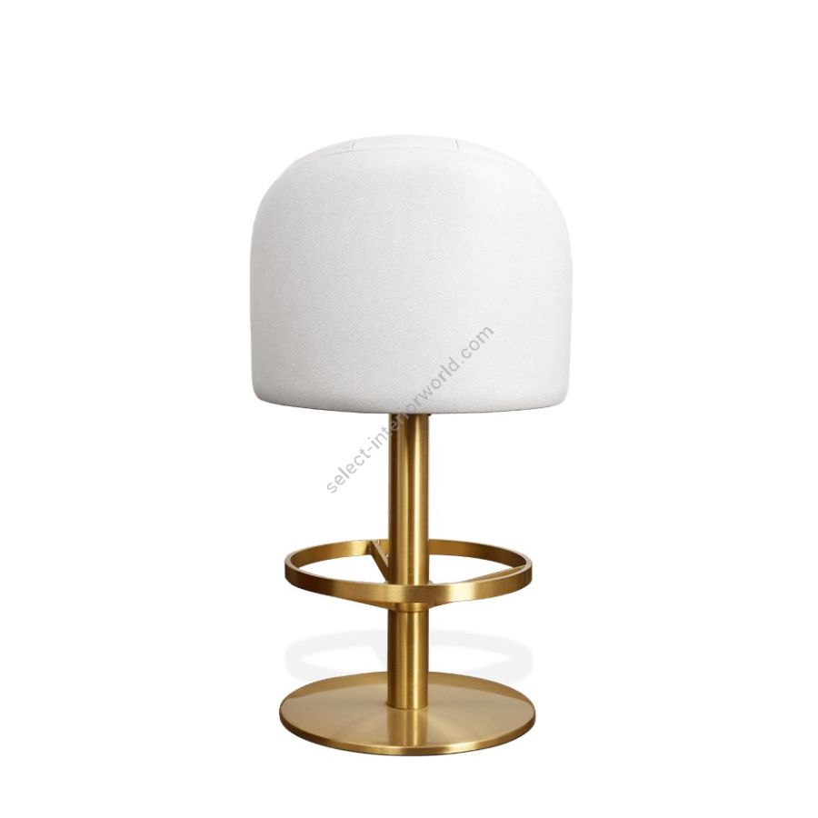 Feel like you're sitting on cotton candy or a cloud with this perfect mid-century bar chair. Gable features a shiny round base and a footrest in polished brass. It is fully upholstered in cotton velvet and features a super stylish design with an accent low back and a cylindrical shape.