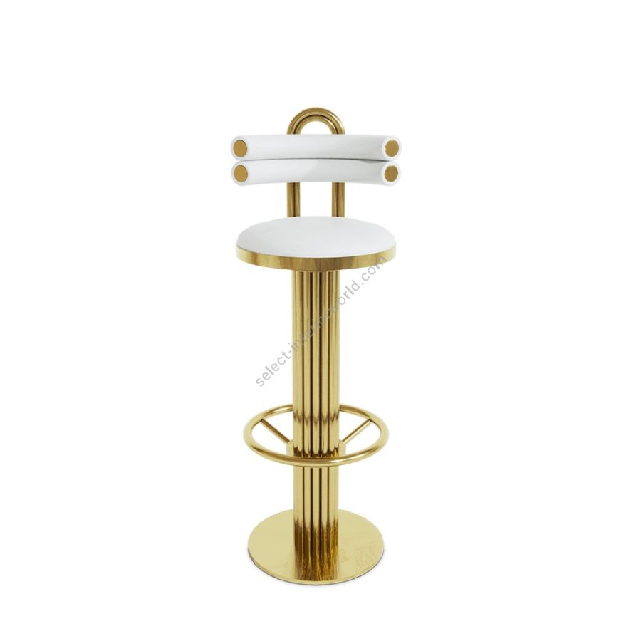 The Kelly Demilune chair draws inspiration from the sculpted arches of the classic movie Casablanca's bar. With tubular back seat and luxurious metal details, it's a timeless and unforgettable piece. This unique bar chair embraces its leading role in our modern product selection, offering creative round shapes and multiple customization options.