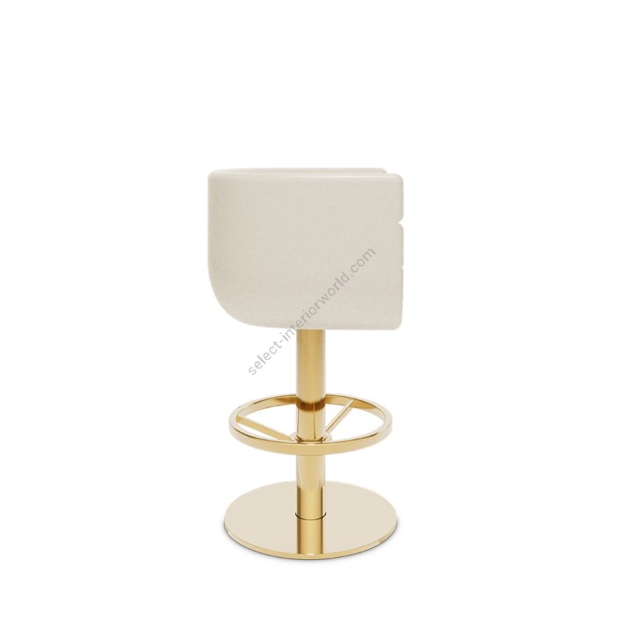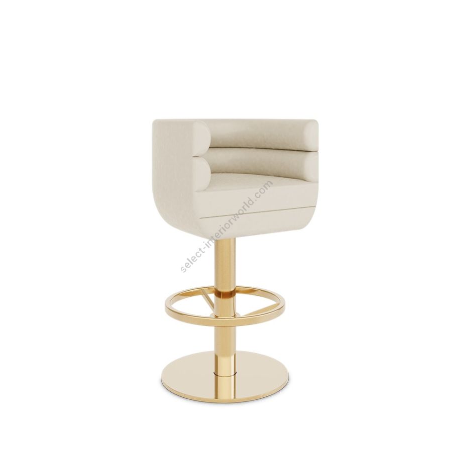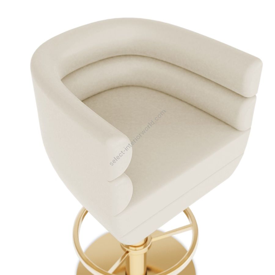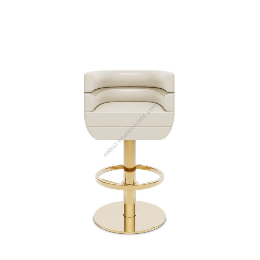 Loren is upholstered in creamy leather and has a compact design with two rolled arms. Drawing inspiration from mid-century design aesthetics but with a contemporary look, it’s hard to resist it. A posh accent bar chair with sinuous curves on its back supported by a round polished brass base and a footrest for comfort.