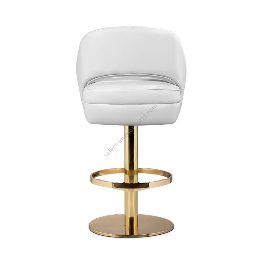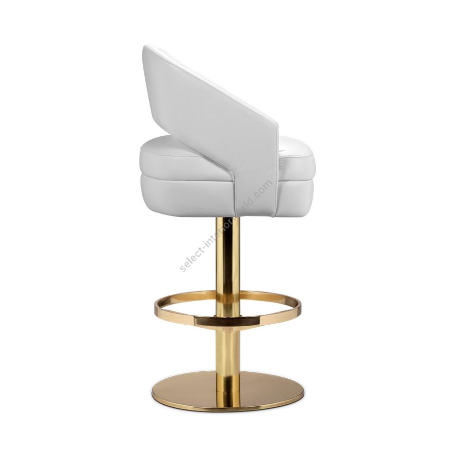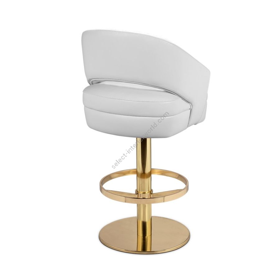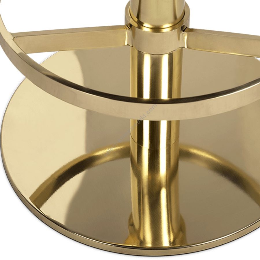 Adorn your living room with a sophisticated design piece that incorporates all of the mid-century elements. It delves into space-age aesthetics, being produced in smooth high-end fabrics mixed with polished metal. The base is round and swivels up to 360 degrees, providing comfort through the foot rail.