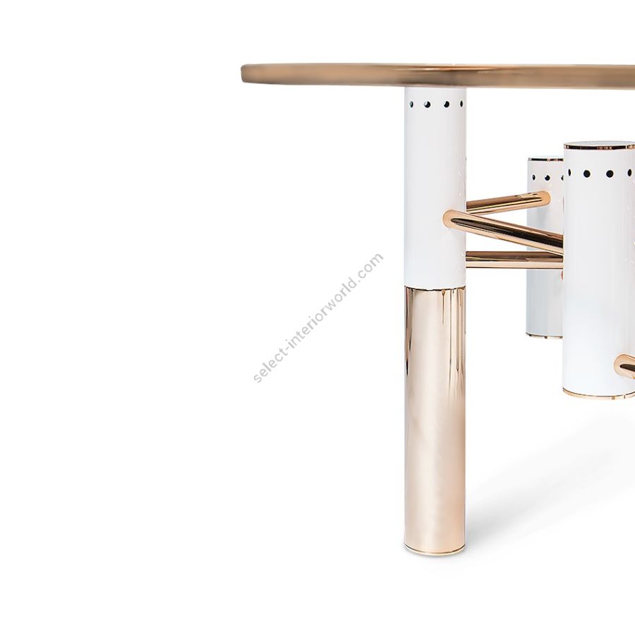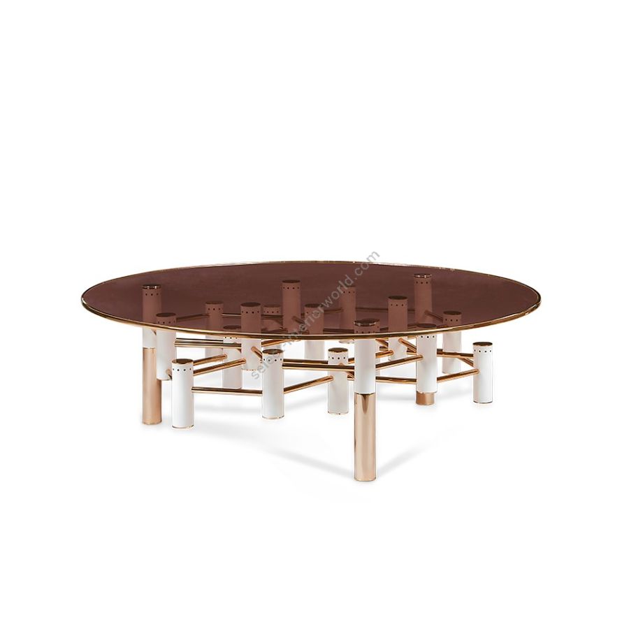 The Konstantine Center Table is the perfect companion to your project’s unique furniture selection. Featuring a structure made entirely in gold-plated brass, Konstantin also features some beautiful glossy lacquered details that can be customized to your project’s needs. All of the unique tubes are connected with a gold-plated brass net to guarantee the stability and high performance of the piece.
