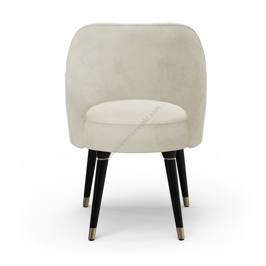 The Collins dining chair, now with armrests, is a harmonious blend of contemporary elegance and timeless comfort. Its plush velvet upholstery, available in a range of luxurious colors, invites you to linger over meals and conversations. The chair's distinctive silhouette, featuring gently curved armrests and tapered legs, adds a touch of sophistication to any dining space.