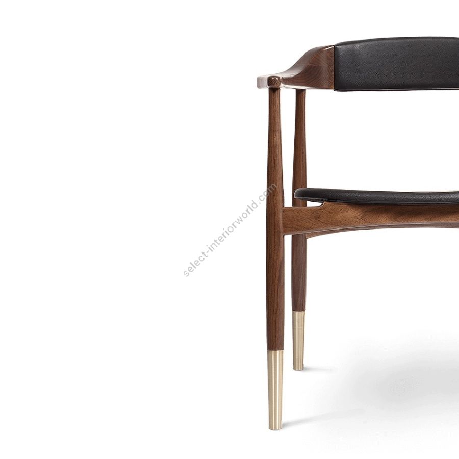 Inspired by the most famous occasional designs, a mid-century masterpiece and an homage to the modern living era. A durable and solid chair features a body structure produced in solid walnut wood. The seat and the back cushions are softly upholstered, contrasting with metal shoes on their legs.