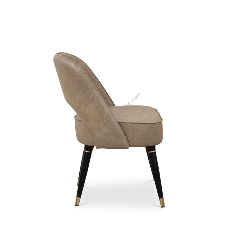 Designed with a classic retro chic feel, comfortable and perfect to pair with a any type of dining table. Finely upholstered, welted stitches on the seat, and a stylish degree reclining on the crescent open back. It features a perfectly curved back, supported by elegant tapered legs with rich accents of metallic details.