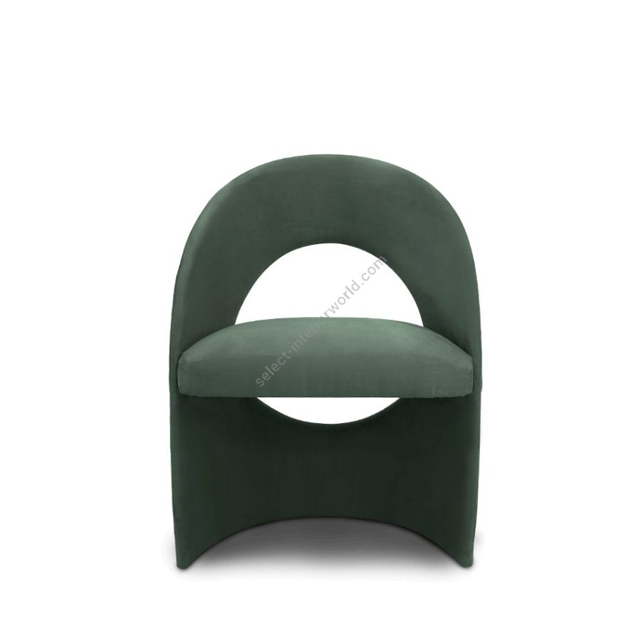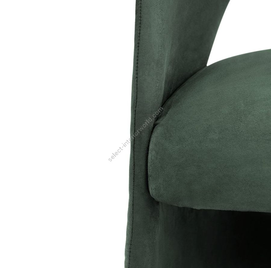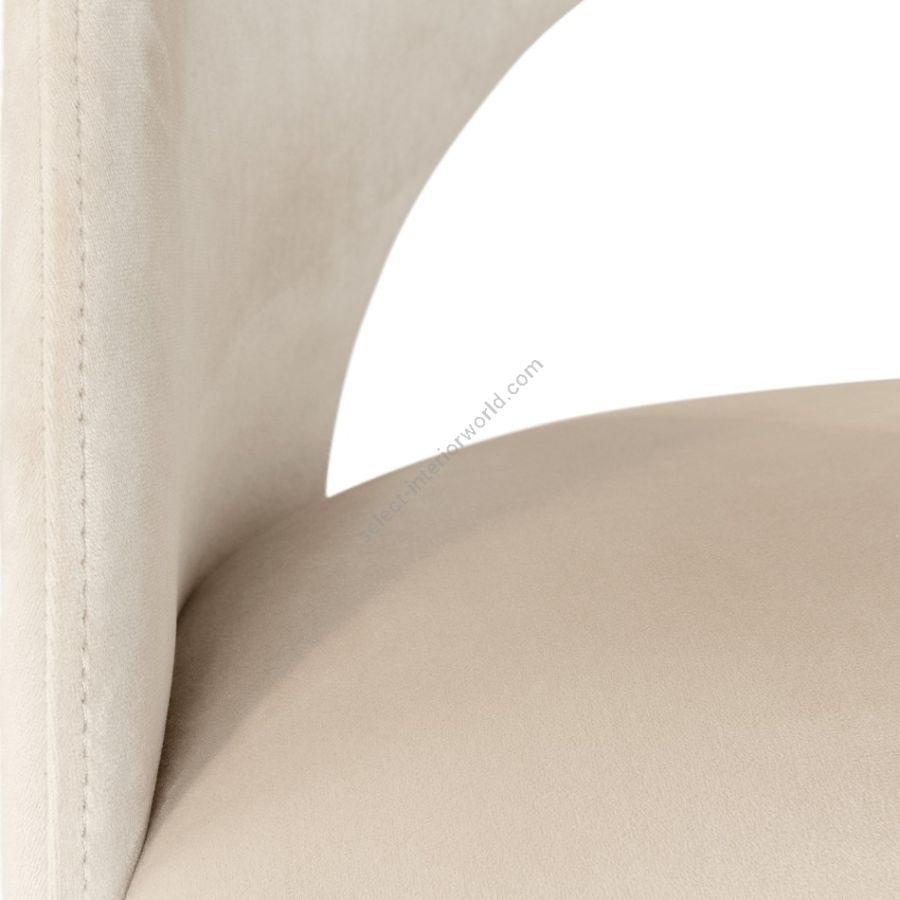 Designed to perform in a manner that indulges the eye with a mixed contemporary shape. Due to its velvet and super stylish open back, it's a colorful and classy dining chair that can easily fit any style you so wish. An upholstered dining chair that features a curved polished brass base, a design with both mid-century and contemporary elements.