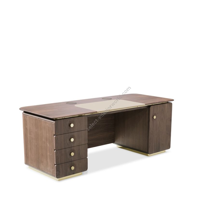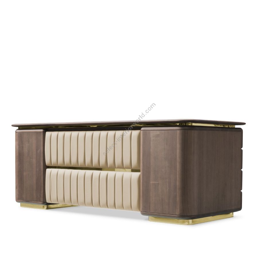 Arne Desk, a stunning mid-century furniture piece that will make a great addition to any home office. It adds a touch of luxury with metallic details and a particularly elegant textile padding on the front, working alongside solid wood. It's the perfect piece for design lovers that want a piece of the past with all the luxury of the present.