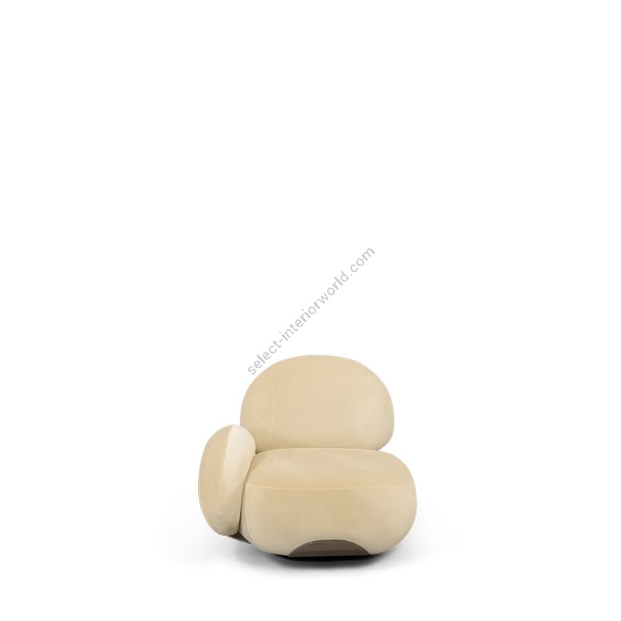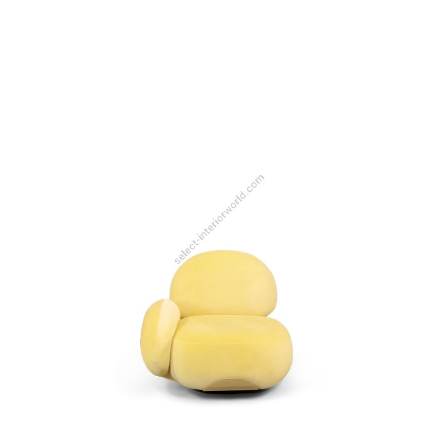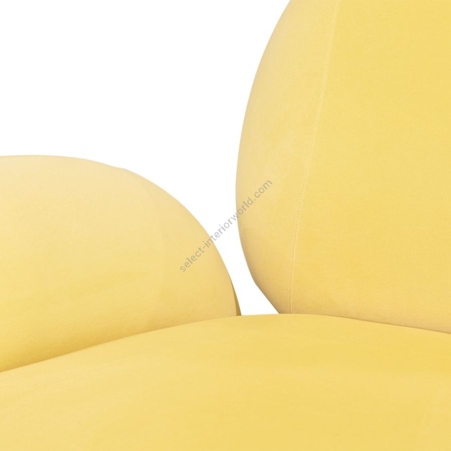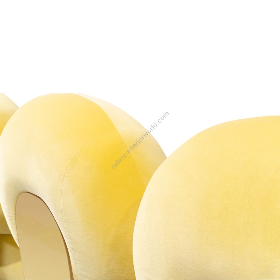 Karlotta sofa: A contemporary masterpiece by Karim Rashid, featuring vibrant colors, a luxurious metallic base, and playful pebble-like forms. Softening our physical landscape by showing how a contemporary world can be warm, human, and pleasurable, making this unique three-seater sofa a statement for any design project.