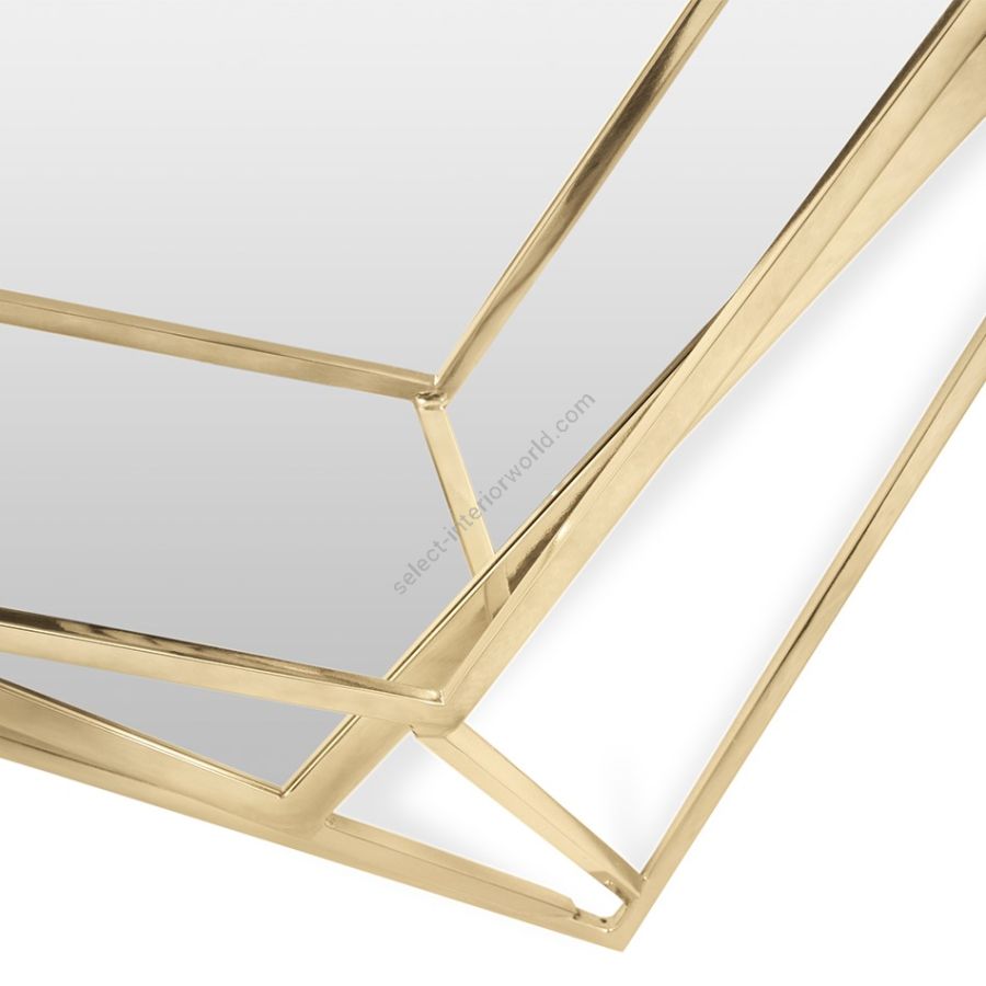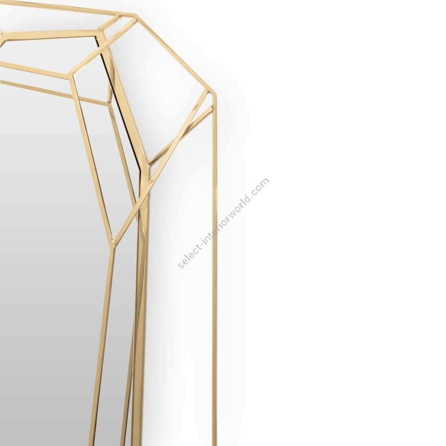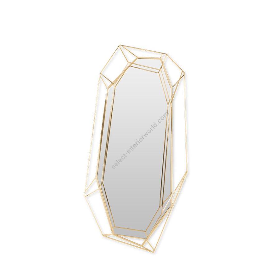 A full-length version of the diamond-shaped mirror. Crafted in a polished brass structure it produces a tall sleek design, merging geometry and design in the same object. This amazing piece will add a luxurious and rich element to any interior.