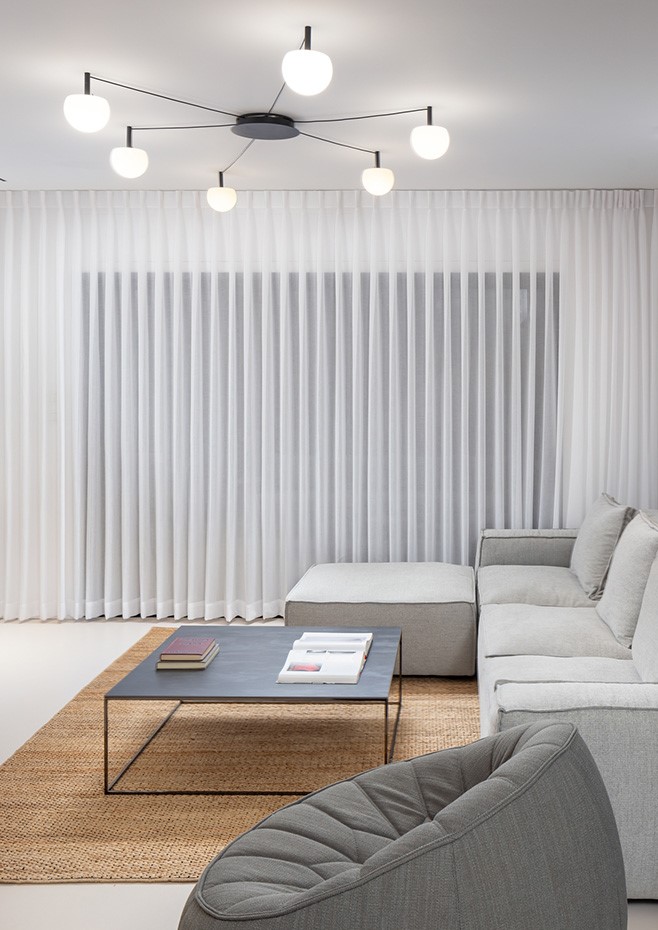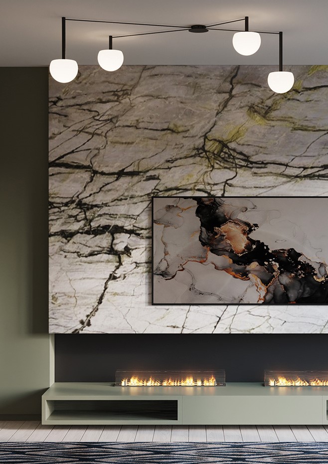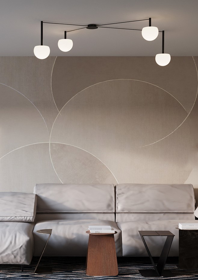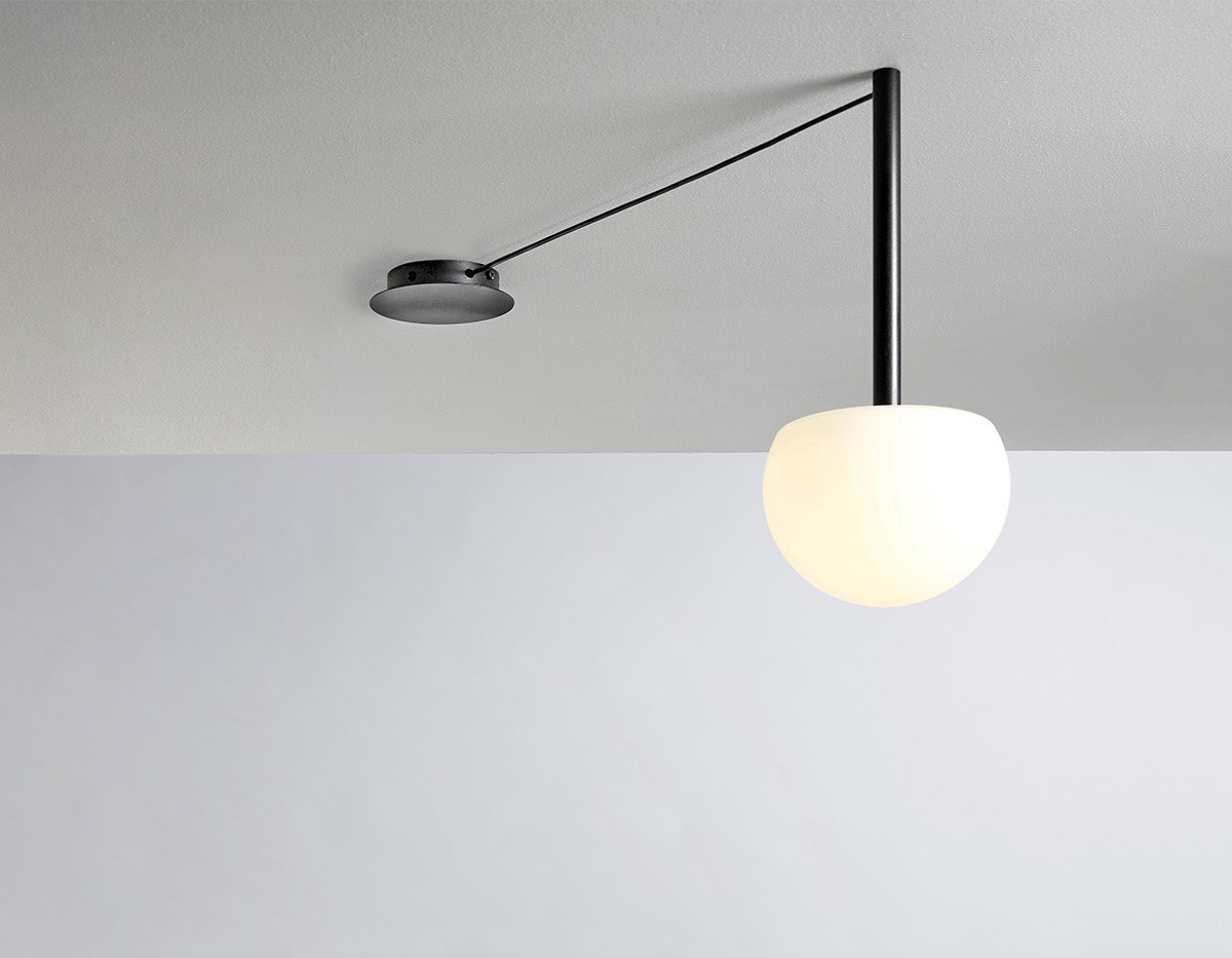 With a single, versatile canopy, several glass hemispheres sprawl across a ceiling in custom patterns to illuminate specific areas. The cables connecting the lights are offered in different lengths while the lights are suspended on metal stems. Infnite configurations can be created from this simple and functional design.