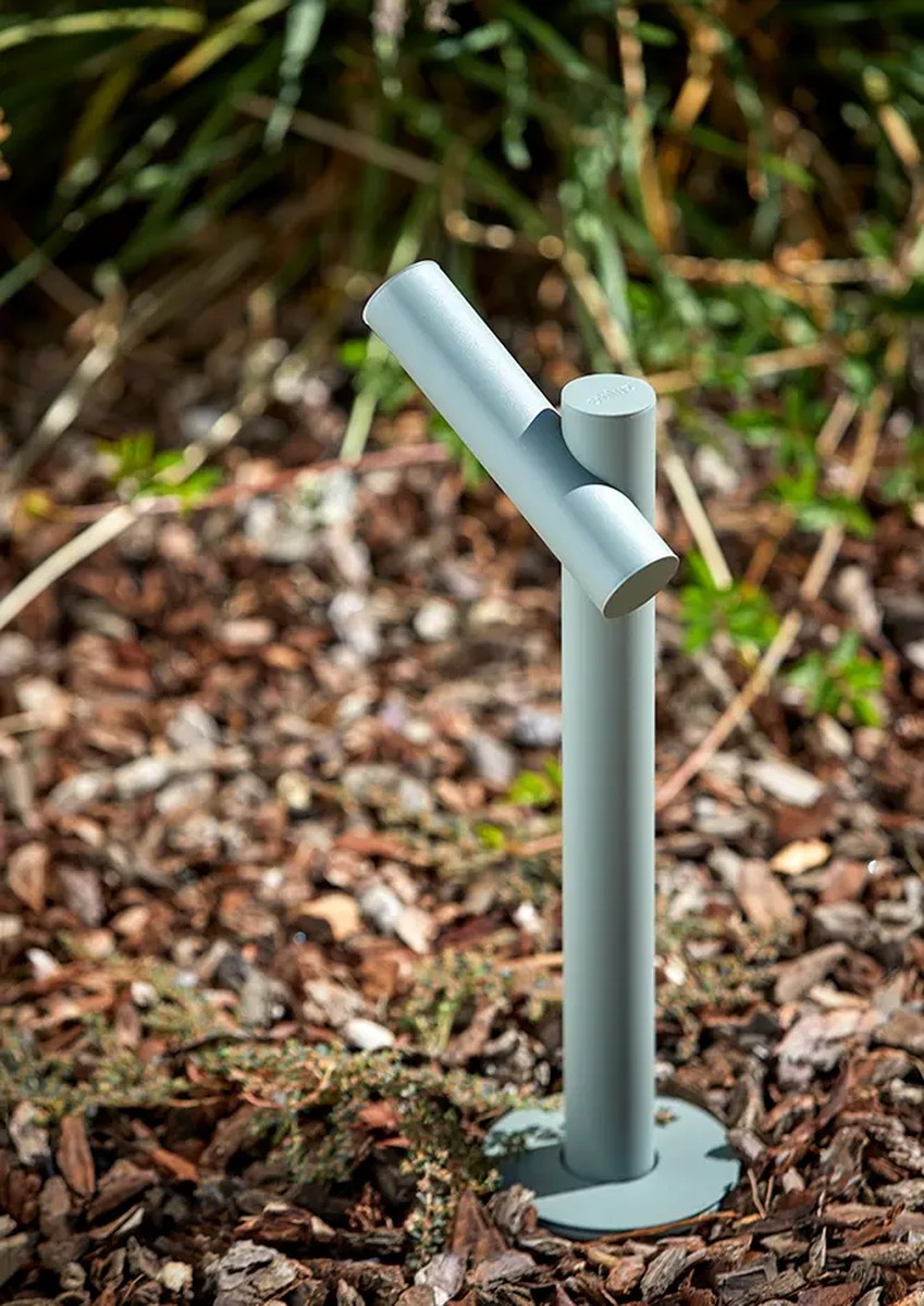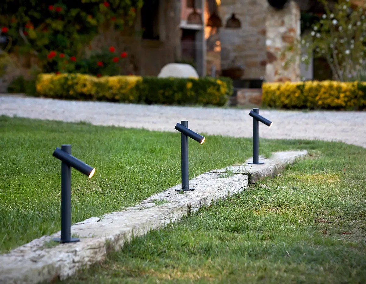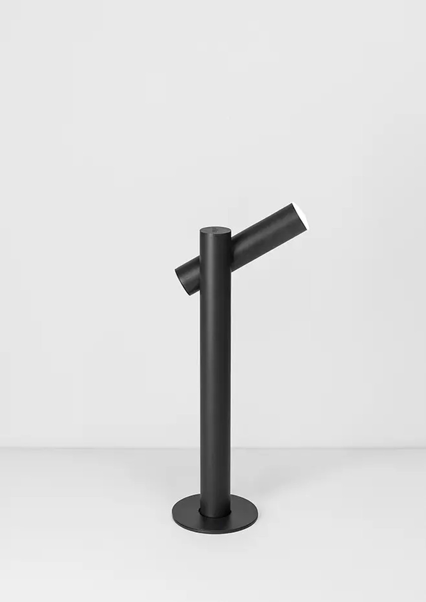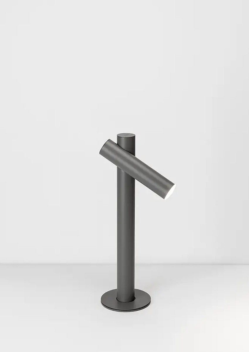 Metallic outdoor bollard light. Integral LED providing direct light. Double-layer coating for high resistence to corrosion and other environmental conditions. Hard wired (no plug).