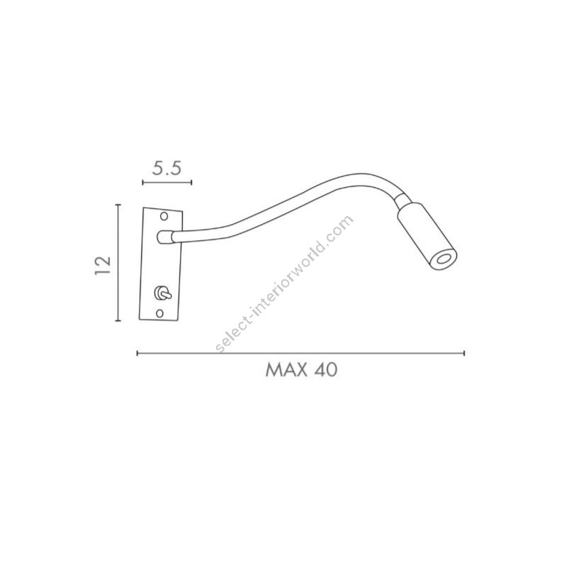 Led reading light with flexible arm in brass and shaft covered by hand sewed genuine leather. Power supply included.