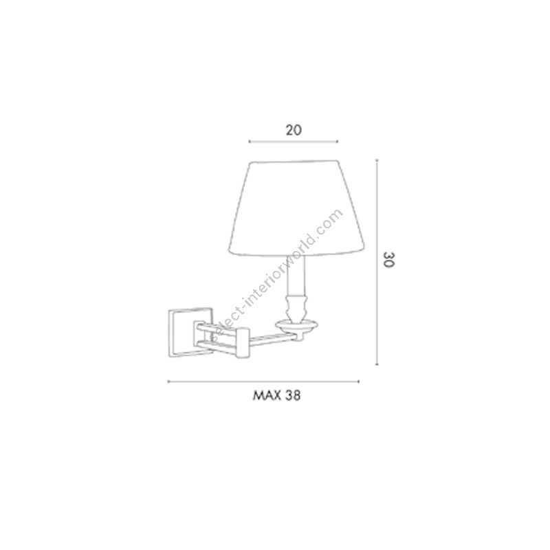 Wall lamp in brass with double swinging arm. Fabric lamp shade.