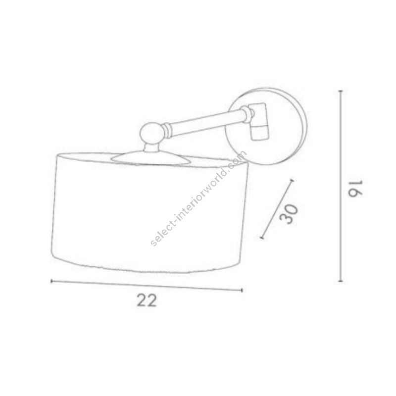 Lamp for wall installation mounting bracket for fixing at wall. Structure in brass with adjustable arm and fabric lampshades.
