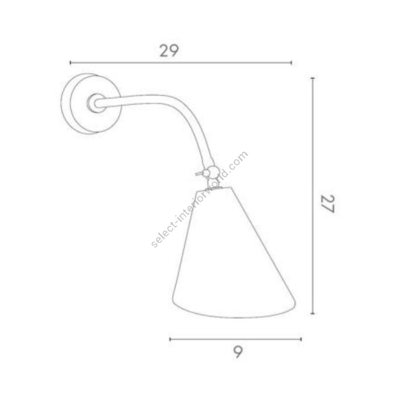 Lamp for wall installation mounting bracket for fixing at wall. Structure in brass with painted metal lampshades.