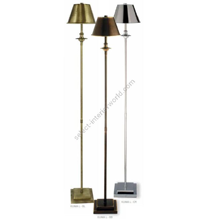 KUMA floor lamp in brass with adjustable shade, various finishes proposal. For indoor and outdoor use. Water resistant.