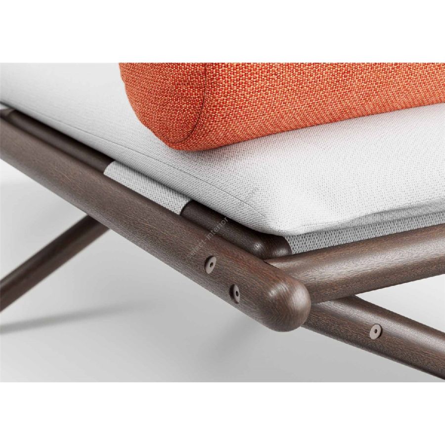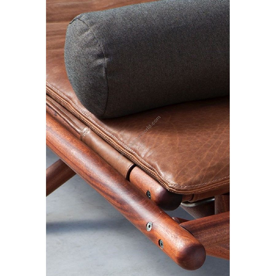 Interamente realizzato a mano in massello di mogano Sapelli, il telaio della seduta è reso ancora più gradevole da uno schienale reclinabile, pensato per accogliere qualsiasi esigenza di comfort. Gli intrecci strutturali sono rivestiti, a scelta, in tessuto o pelle con la possibilità di aggiungere la morbida cuscinatura “Comfort”.