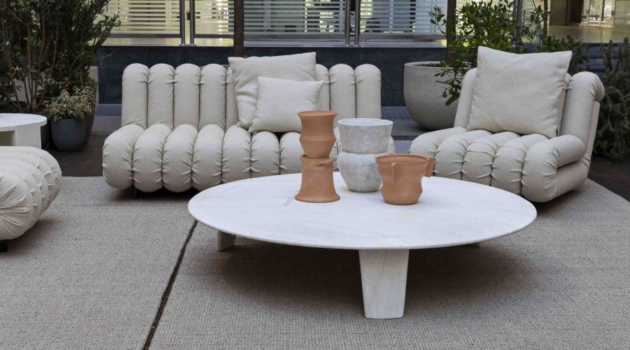 Biscuit Coffee Table eleva l’aspetto mono materico al suo massimo livello.