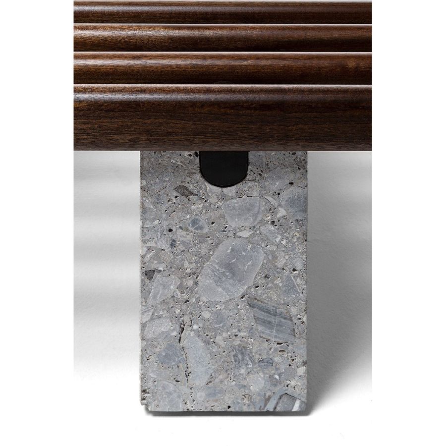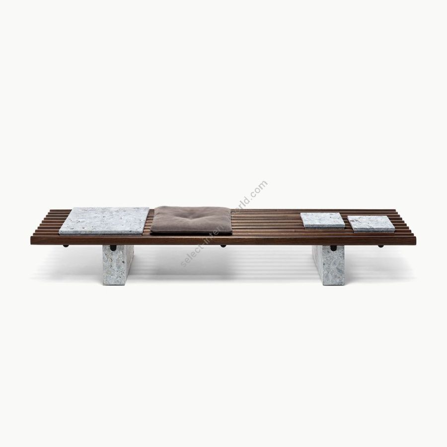 Disponibili nelle finiture Leaf Rust, Arabescato Orobico Rosso, Steven Black, Ostuni Travertino o in cuoio, le piastrelle in marmo diventano un originale vassoio. I cuscini, disponibili in tessuto o in pelle, sono intercambiabili per offrire il massimo della funzionalità e trasformarsi per accogliere ogni esigenza di stile.