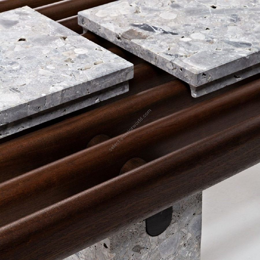 Dal mogano Sapelli del piano, al pregiato marmo delle basi portanti, i materiali sono scelti con la cura più estrema. La struttura di Panarea Coffee Table è disponibile con tre dimensioni di vassoio in diverse finiture cromatiche: un dettaglio nato dalla natura e reso prezioso dall’artigianalità.