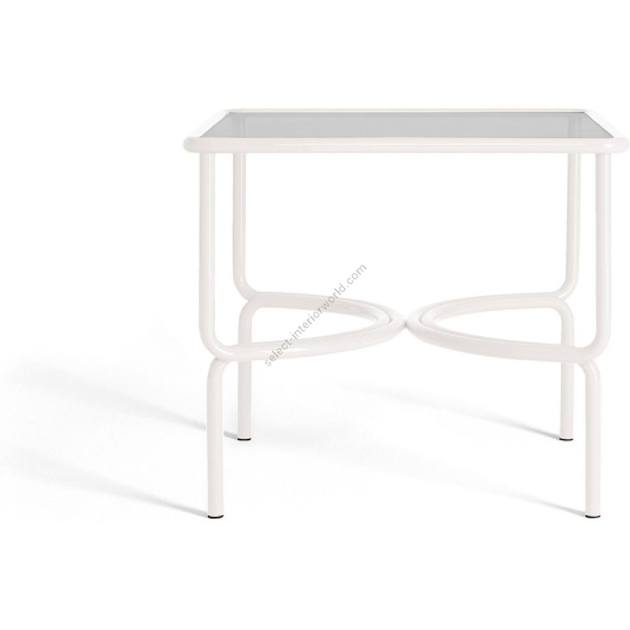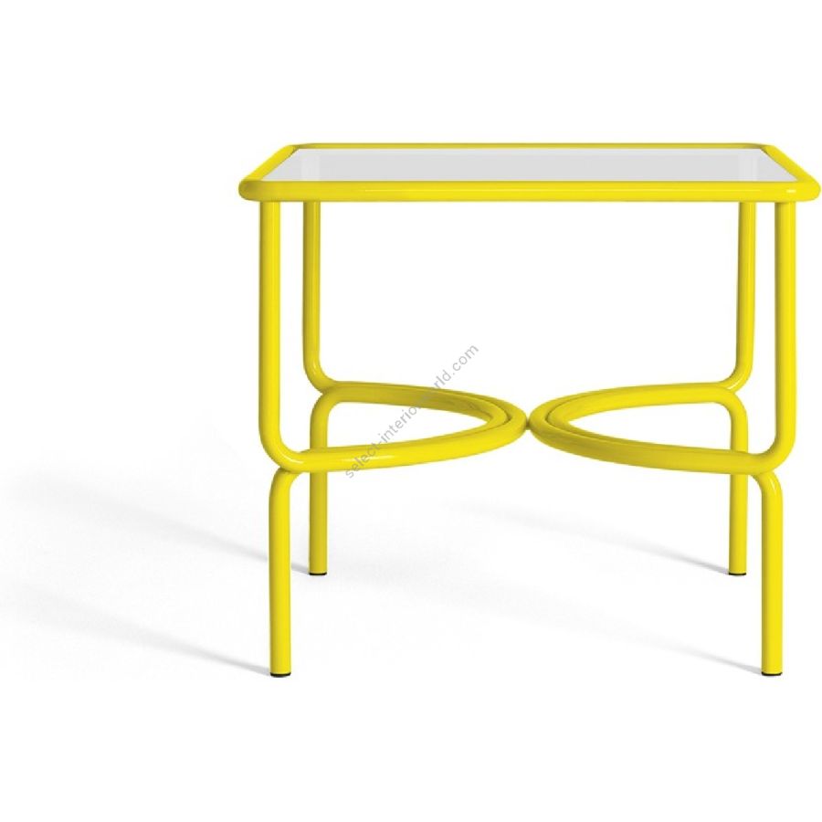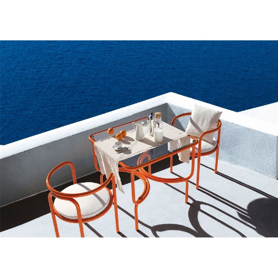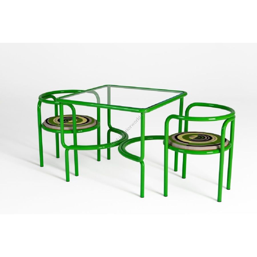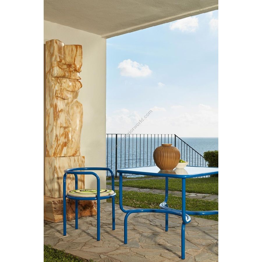 Il telaio in acciaio inossidabile verniciato si incurva simmetrico dando vita ad un giocoso disegno anni Sessanta. Le sinuose linee di Locus Solus Dining Table, conferiscono un impatto visivo dinamico e leggero.