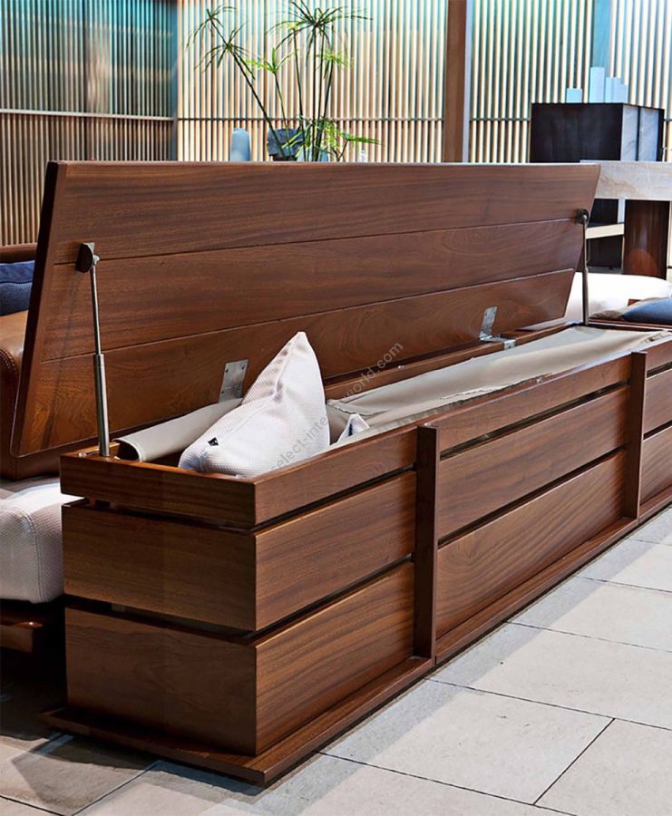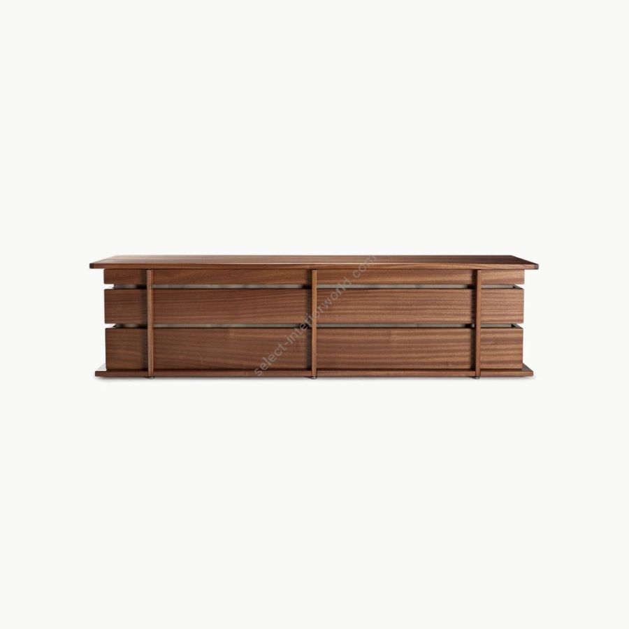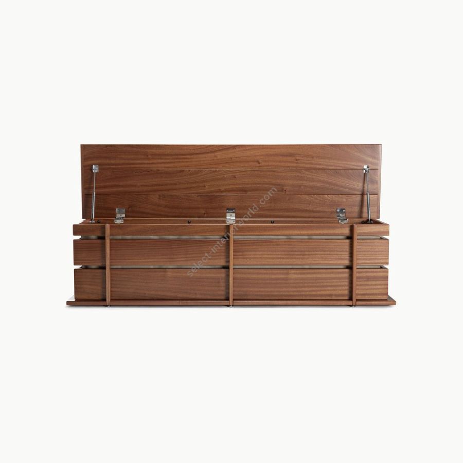 Interamente in massello di mogano di Sipo lavorato a mano, la cassapanca è una soluzione dinamica ed elegante per scrivere i propri spazi. Capiente e lineare, equipaggiandola di due morbidi cuscini, diviene una comoda ed ampia seduta.
