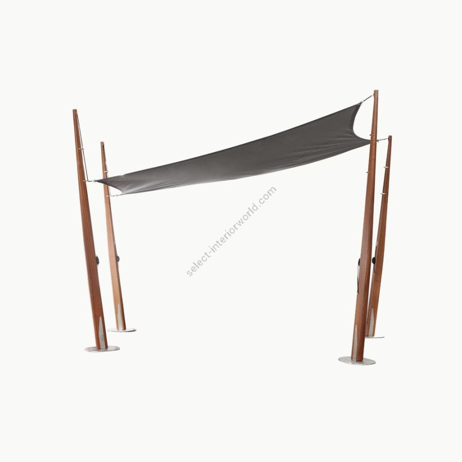 Le applicazioni nautiche ispirano le giunzioni che collegano le tende agli architettonici piloni in legno, rendendole al tempo stesso un elemento estetico e funzionale unico.