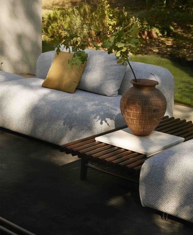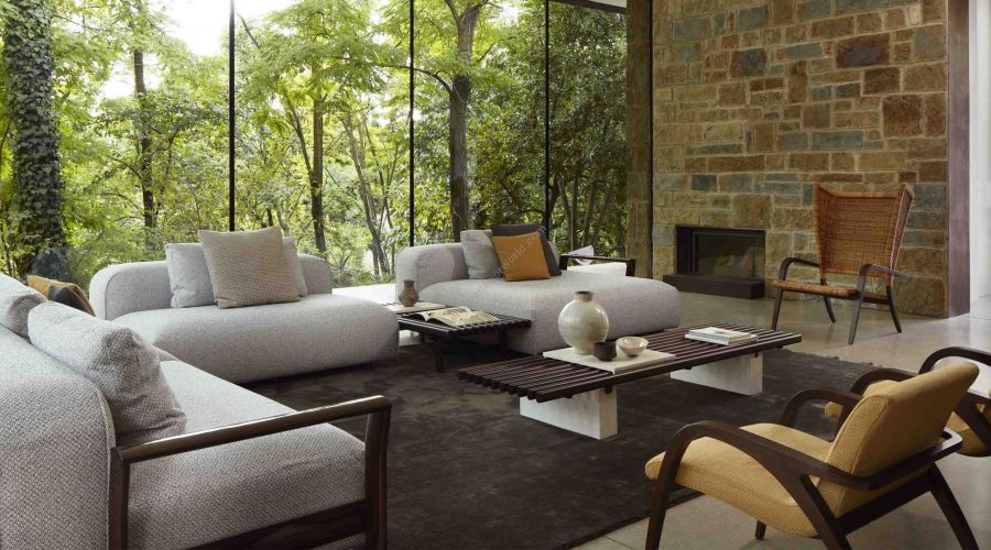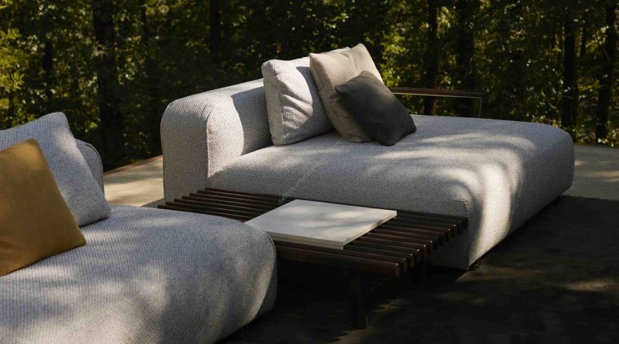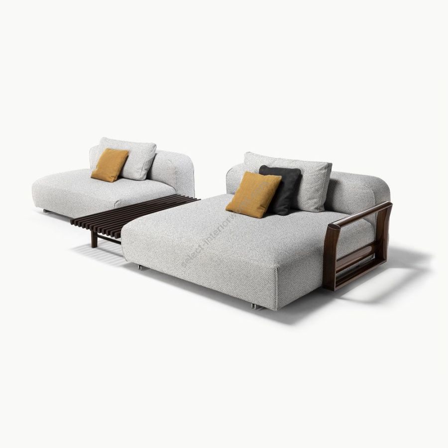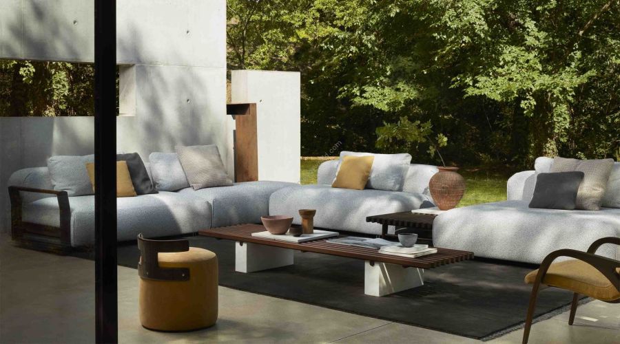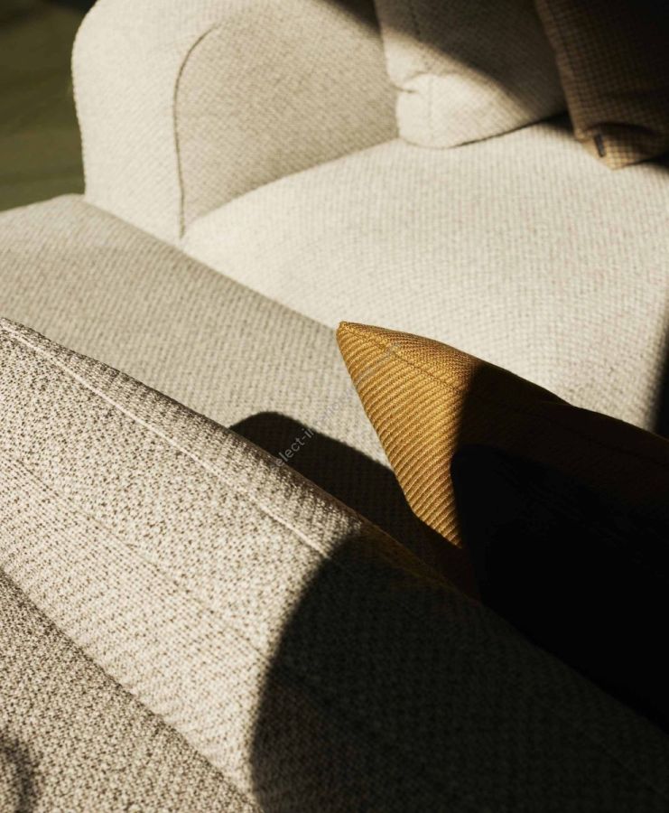 Elba Sofa si articola seguendo le necessità dell’ambiente in cui è inserito. I moduli possono giustapporsi tra loro, o essere sostituiti con altri moduli della stessa profondità, o ancora si possono aggiungere elementi quali pouf e isole, dando vita a composizioni angolari dai profili nuovi.