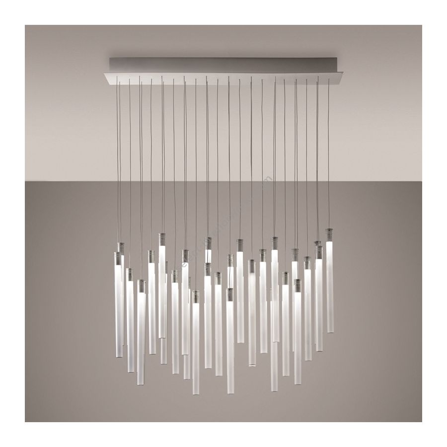 The Multispot Tooby pendant lamp is very versatile and suited to any environment. Different sized and shaped ceiling roses are available with multiple light fittings. The lamp is well suited to any environment and can be customized depending on the size and type of space. The frame of the diffusers is made of anodised aluminium or copper.