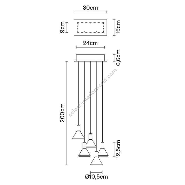 - Fabbian / LED Ceiling Lights / Multispot Polair F32 A47 5 spots 30x15cm