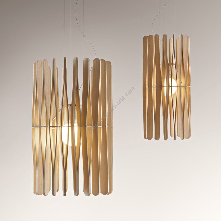 The Stick cylinder pendant lamp is available with diffuser in two sizes and uses natural wood. Its particular finish makes it suitable for ecological and modern environments. In the home, it is ideal in the kitchen and the living room or in the office in the entrance area. The bulb can be halogen or LED.