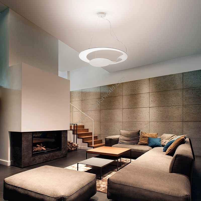 The collection is made up of one hanging lamp and one wall lamp, both for indoor use. The main structure is in matt white painted aluminium. The lamp runs on mains power and is suitable for use with LED bulbs.