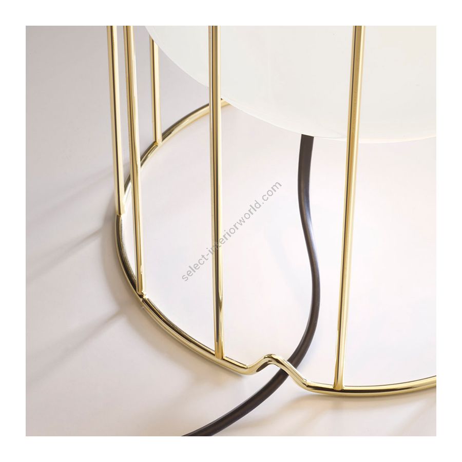 The Aérostat collection is composed of indoors hanging, table and floor lamps. Hanging and table lamps are available in two diffuser sizes with a metal cage acting as support, while the floor lamp is available in one size only. All diffusers are in shiny white blown glass whereas the metal cages are in brass, black chrome and copper finish, all shiny. Electrification on main voltage for LED bulbs.