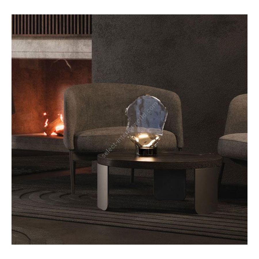 The diffuser is made from hand-blown glass that is then flattened by master glassmakers; the base is in black anodised aluminium, fixed to the glass with three grains that increase its stability and solidity.