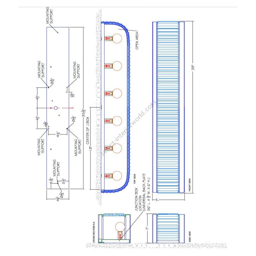 Dimensions: 7” H x 38” W x 7” D ( 17.78 cm x 96.52 cm x 17.78 cm )