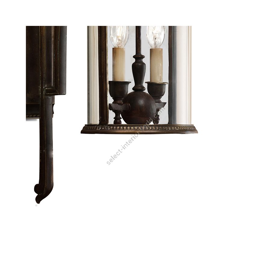 Wall mount in a fine bronze finish. Features clear hand-blown glass and antiqued candles.