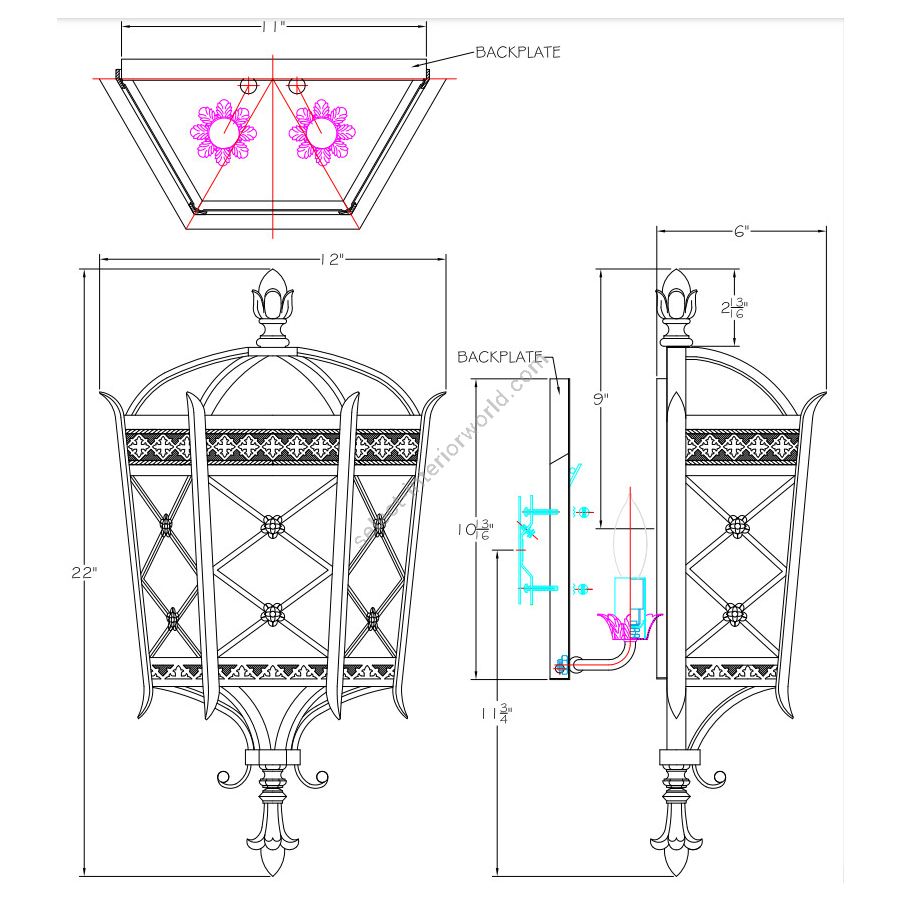 Chateau Outdoor 22″ Outdoor Sconce is available in 1 model (Finish / Model number):