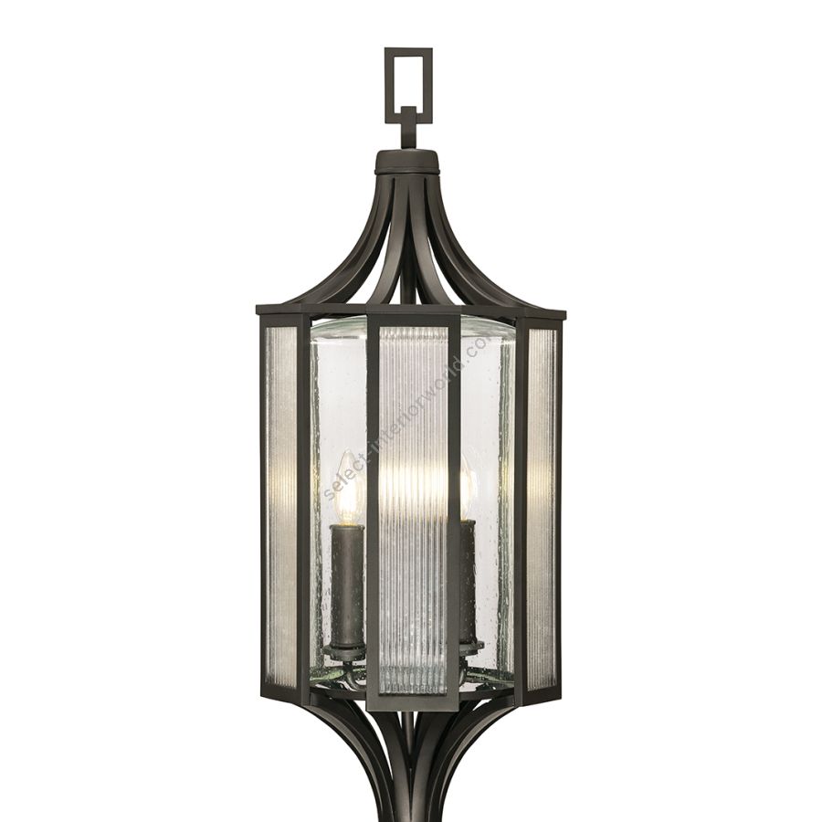 Boldly designed yet quietly subtle, this adjustable outdoor pier/post mount features seedy inner glass with an overlay of reeded glass panels. Offered in a hand-rubbed black iron finish.