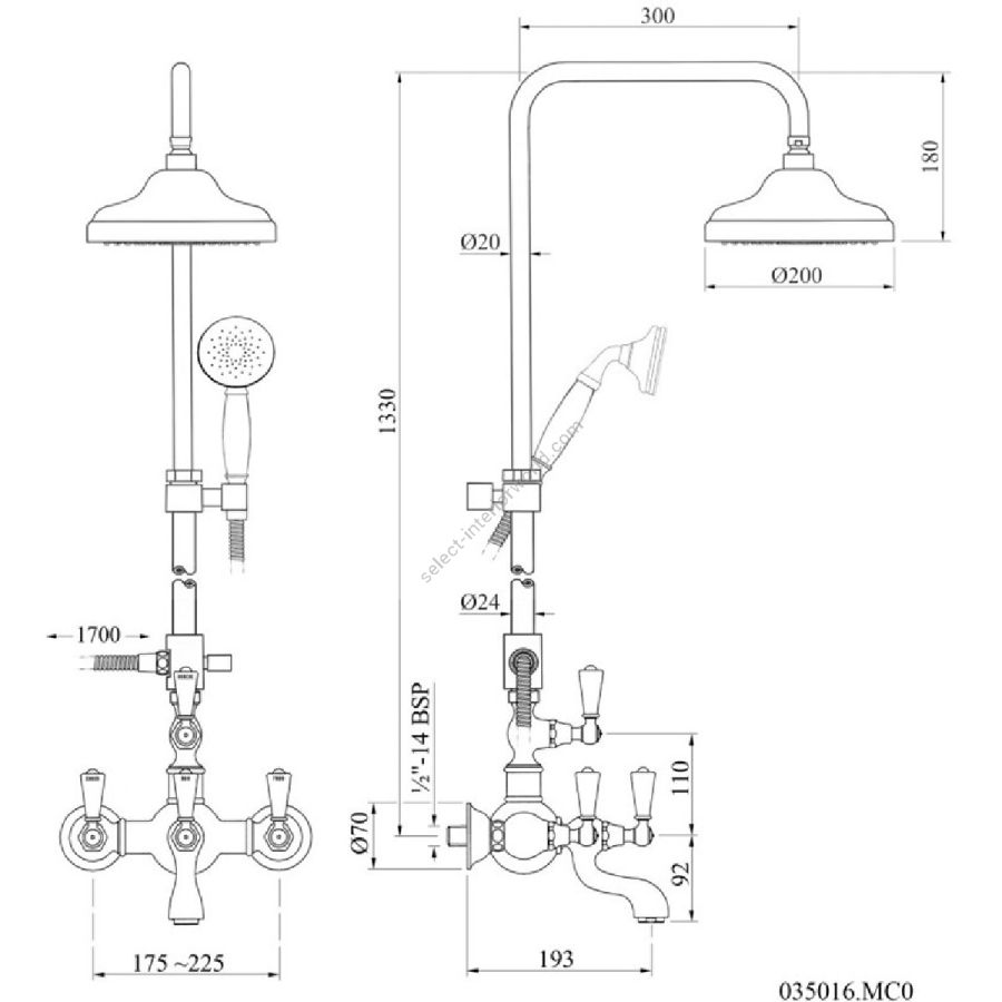 Bronces Mestre / Shower Sets / Bath shower set with column and porcelain handles 035016.MC0.50