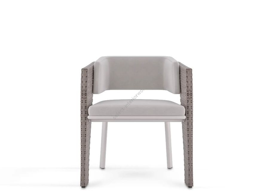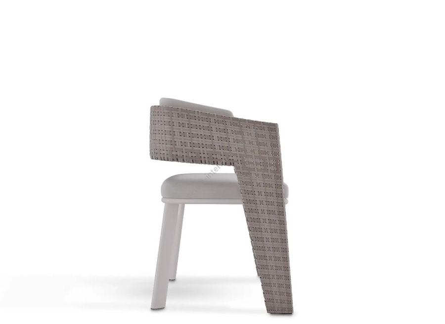 Galea is a glamorous outdoor dining chair that blends ancient with modern. It draws inspiration from an helmet worn by warriors in the Roman Empire and is brought to life through traditional weaving technics from Indonesia, combined with Portuguese exquisite Metal work for a durable and resistant outdoor piece. Made with Stainless Steel, Powder Coating & Synthetic Mesh this elegant chair with an Seashell Color is perfect for a relaxed yet luxurious outdoor.