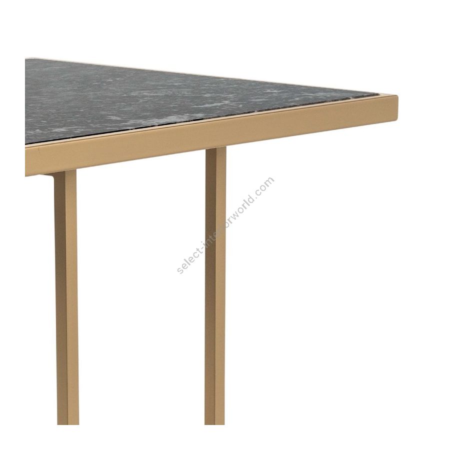 Structure made entirely of metal in Gold Rumba finish, exclusive for this collection. This elegant table, with their metal detail, stand out in the rooms and can be combined with several collections. The table top is available in wood or marble materials.