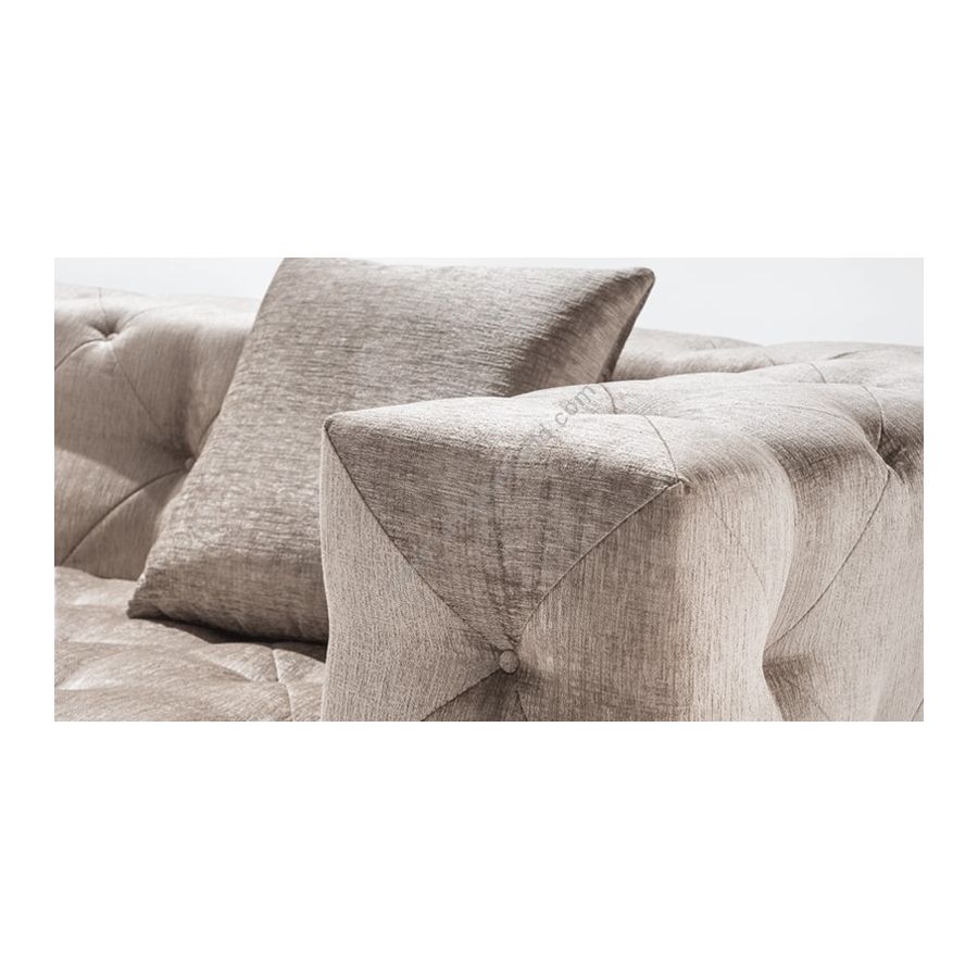 The AH Signature sofa is one body structure with complete capitonné finish and two decorative pillows as part of the concept. It’s characterized for its soft and straight lines and an extended depth. This makes this sofa useful for a big living room or a more intimate, smaller space. You can choose any type of basic fabrics for the structure and spice things up, with fabric contrast or accent fabric for the decorative pillows.