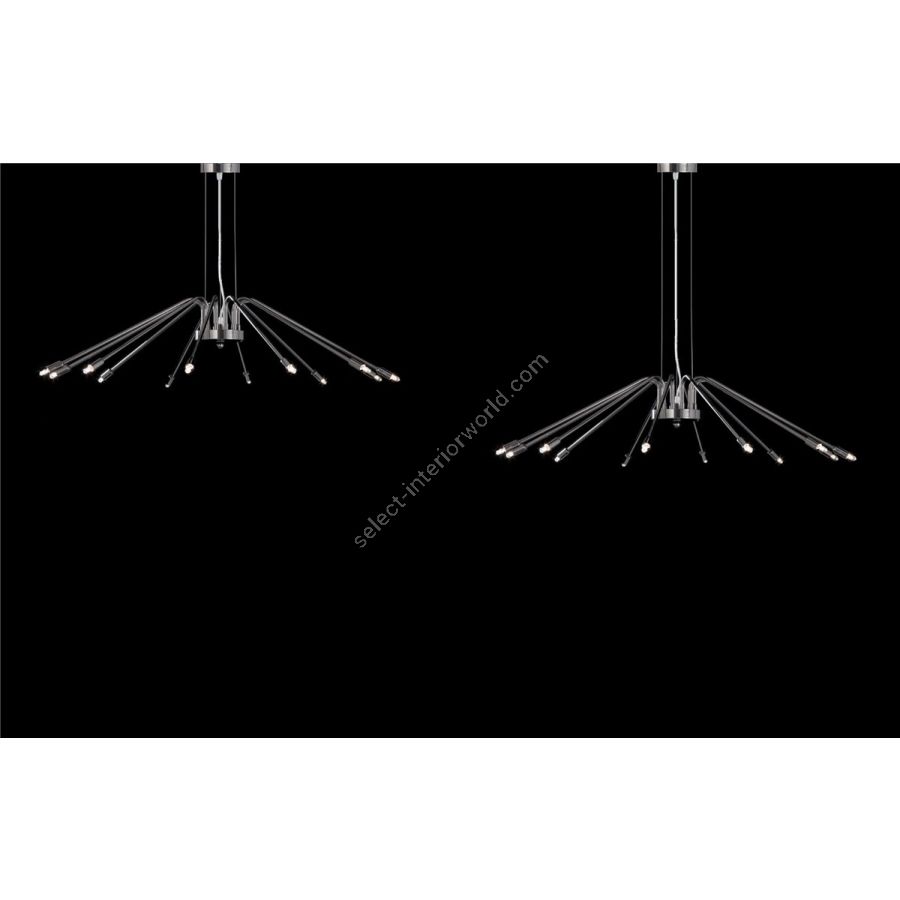 The JOLIE chandelier is proposed as standard with minimal lamp holders suitable for G9 bi-pin bulbs but on request it can also be made with lamp holders E14 or E27 to accommodate larger bulbs.