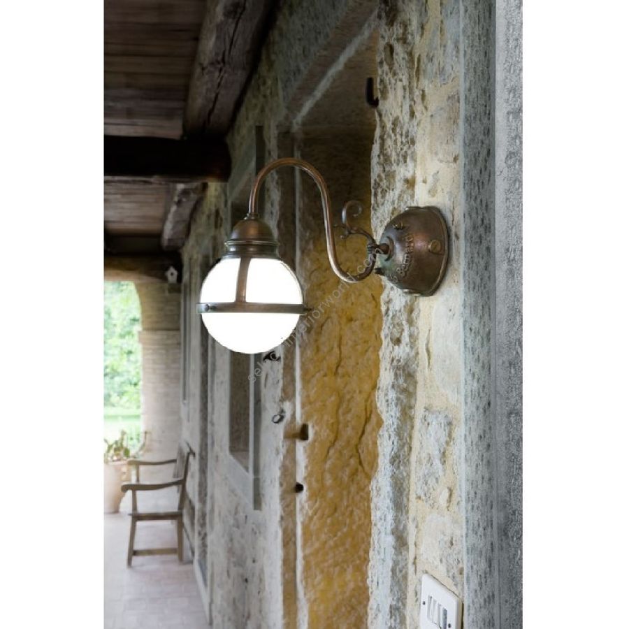 The wall fixtures feature a base and glass-holding structure made of brass, which are then subjected to an antiquing process to give them a vintage look. The blown glass, with its glossy milk-white finish, creates an elegant contrast to the brass structure, diffusing a warm and welcoming light in any room. These wall fixtures are ideal for illuminating hallways, entryways and other areas where soft, enveloping light can create an inviting atmosphere.