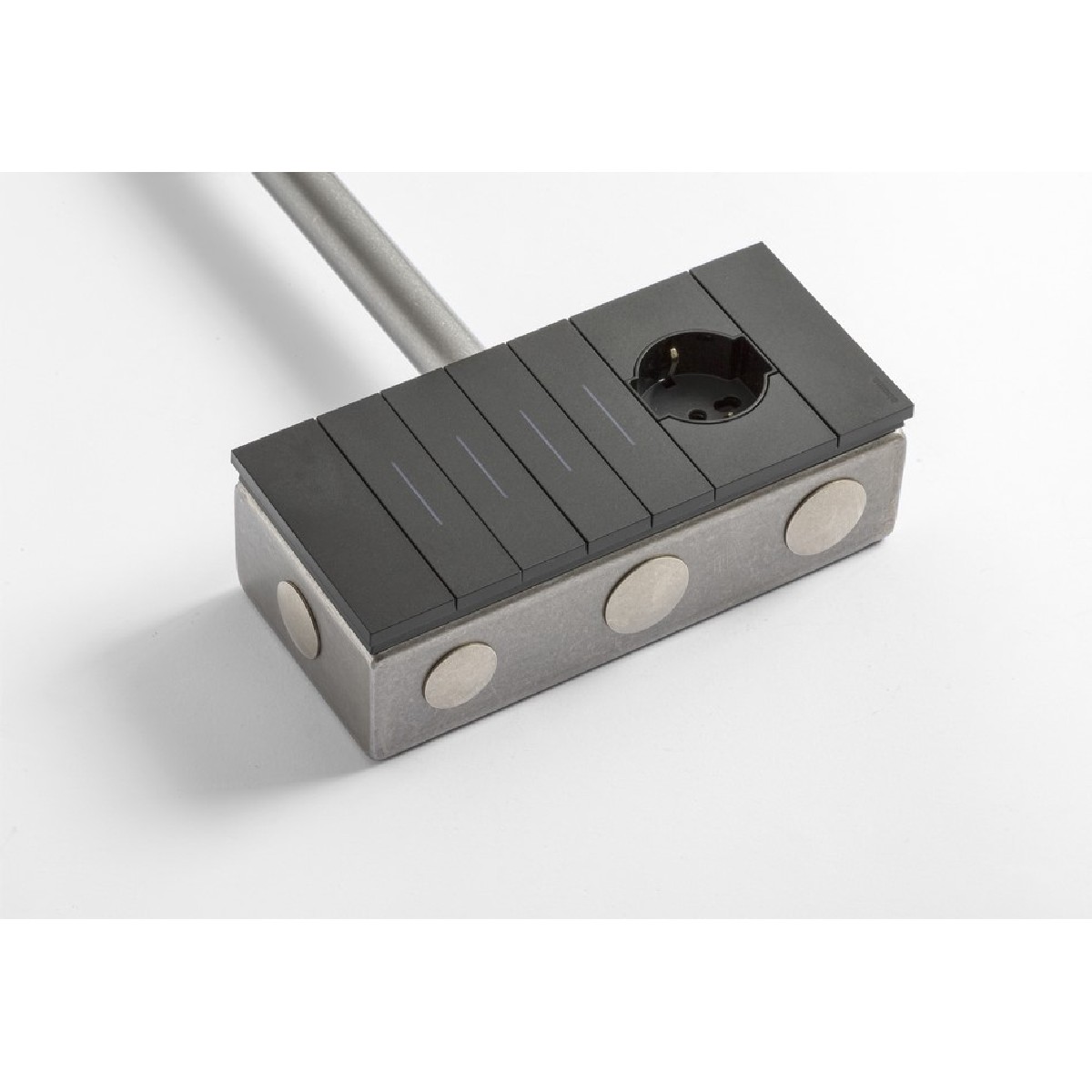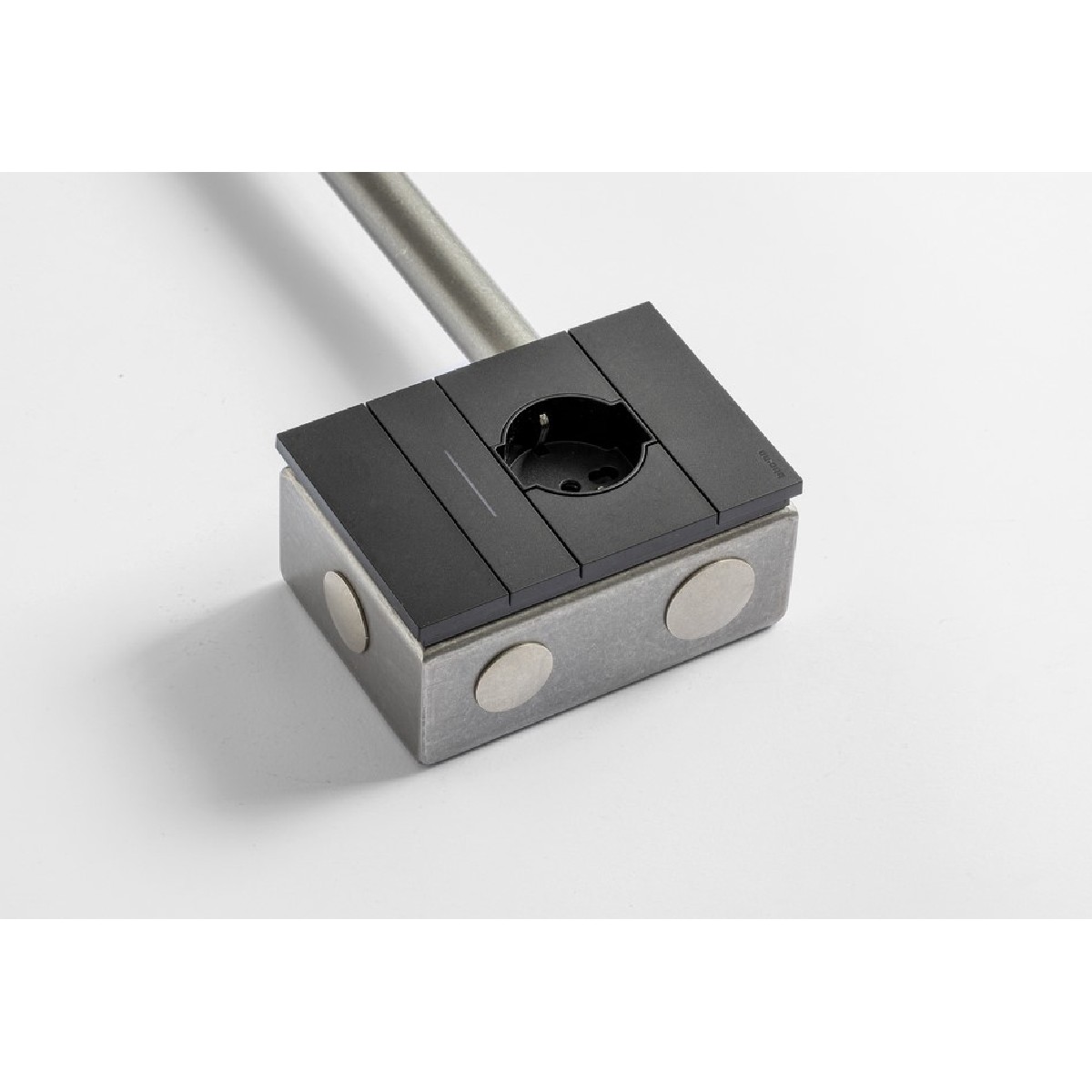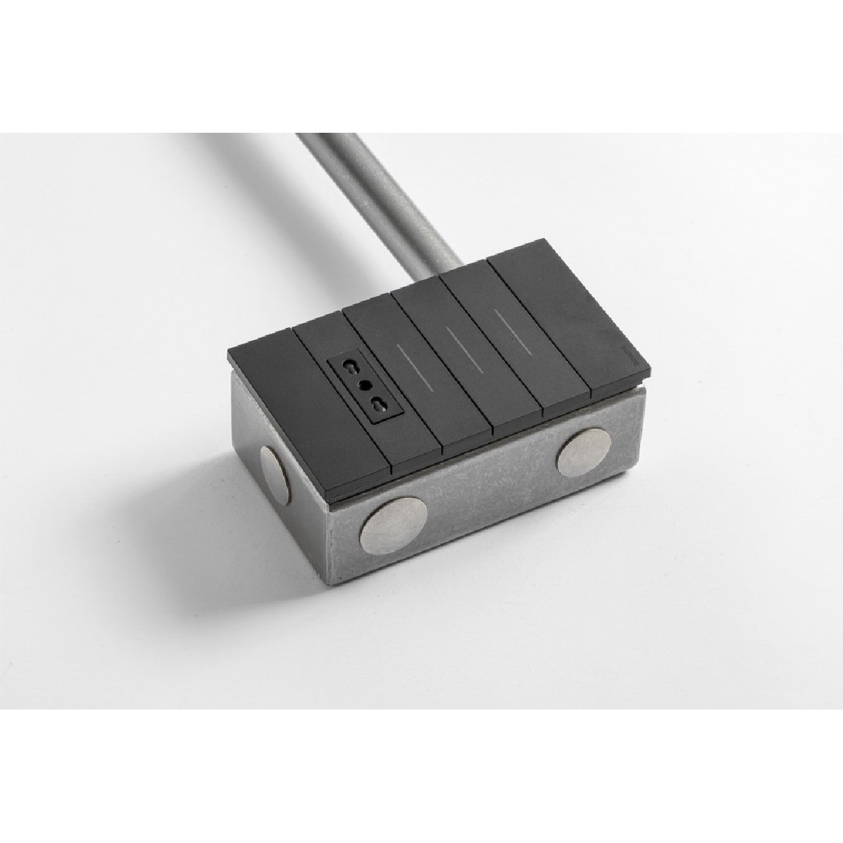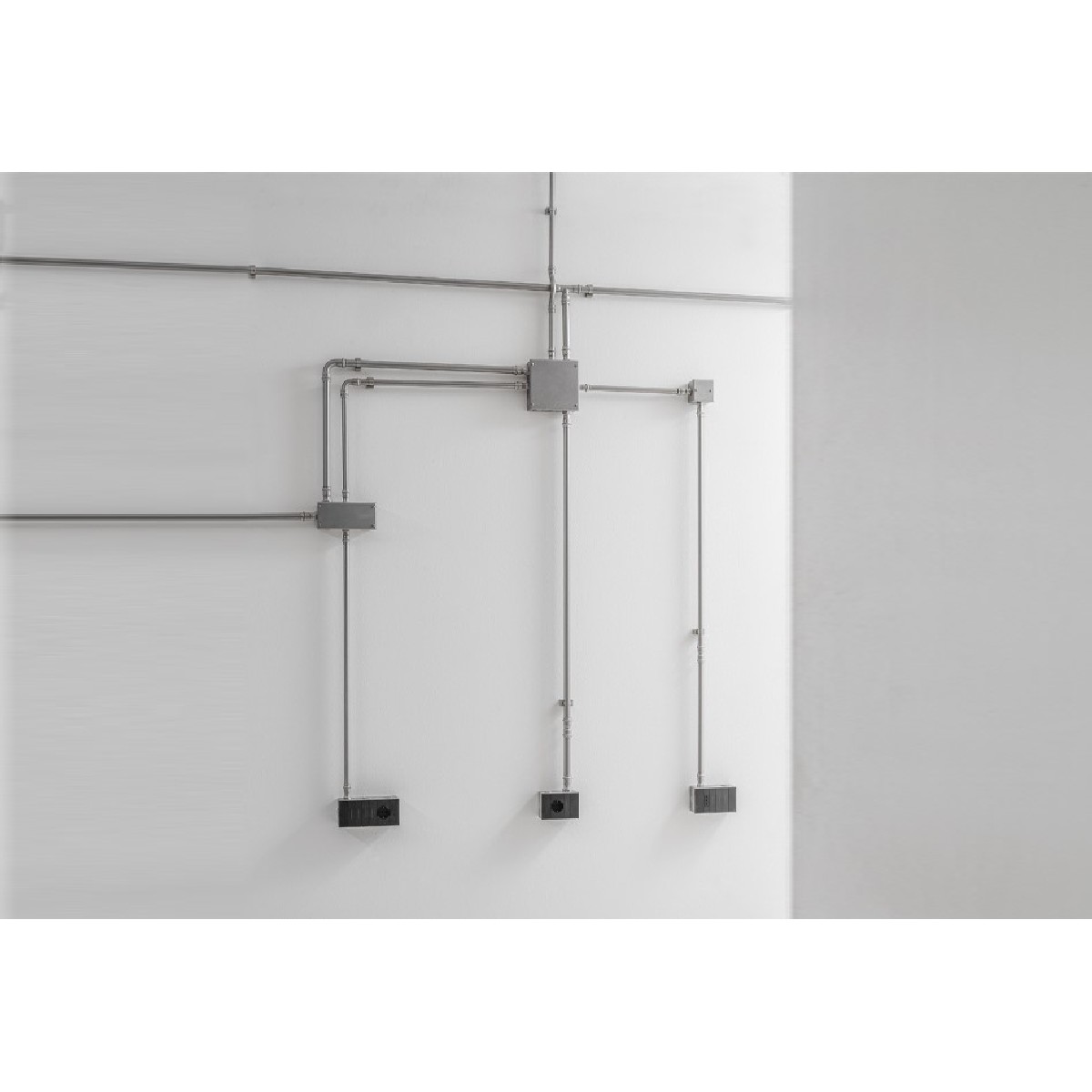 Interesting visible indoor lighting system available in the new finish that Aldo Bernardi offers, the martellato stainless steel, the result of which is a pleasant, opaque and silky appearance of this material. The core of the ECONOW system is a new and interesting model of junction boxes of various sizes.
