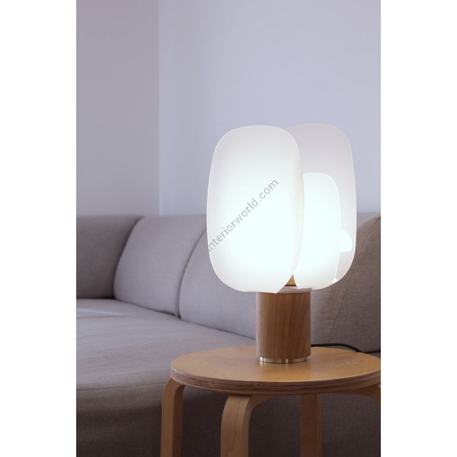 What most attracts our attention about OPHELIA is precisely the possibility of playing with it to achieve different types of lighting. The light source can remain visible, or partially covered, or completely hidden; this is achieved because the four slats of its shade, attached to the base by the wooden structure itself, rotate independently, generating different degrees of lighting. In addition, thanks to the design of the subjection and the little resistance offered by the methacrylate when rubbing against each other, a very clean, very easy rotation is achieved. The two outer slats have a 180º turn between them; the same happens with the two inner ones, with which the total rotation of the four slats of the screen is 360º. We really like its design, so unexpected, so different and innovative, we love his mischievous spirit. OPHELIA is ideal for a bedside table, on a low cabinet in the living room or hall, on a shelf... the possibilities are endless, since OPHELIA combines with decorations where a beautifully disruptive element has room.