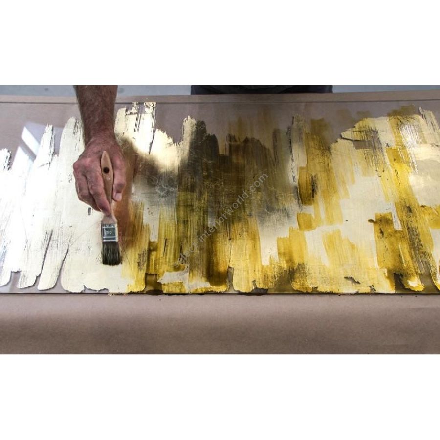 “Girgenti” decor with white and ochre varnish hues on a scratched gold leafed pattern.