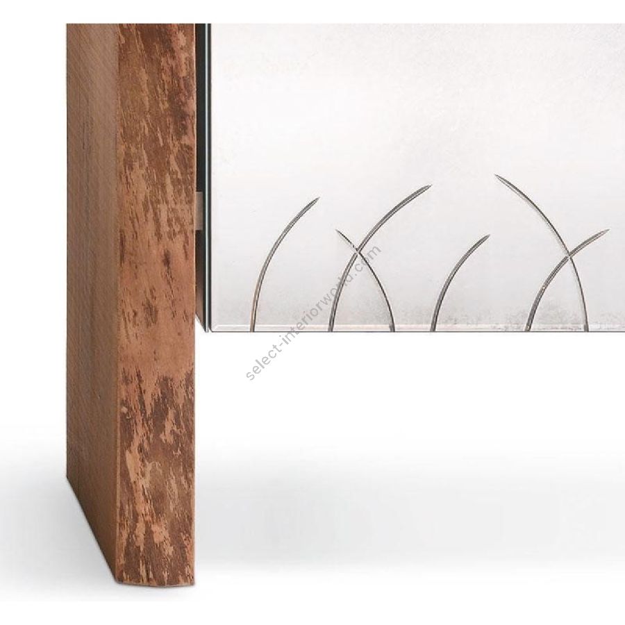 Three doors buffet in antiqued mirror with shiny handmade engravings. Structure and sides in solid oak.