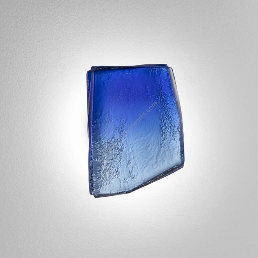 Wall decoration in baked glass in two layers with irregular edges. All decorated degradé from cobalt blue to transparent and silvered with light antique finish on the back. Iron frame in matt black lacquered finish. LED perimeter lighting.