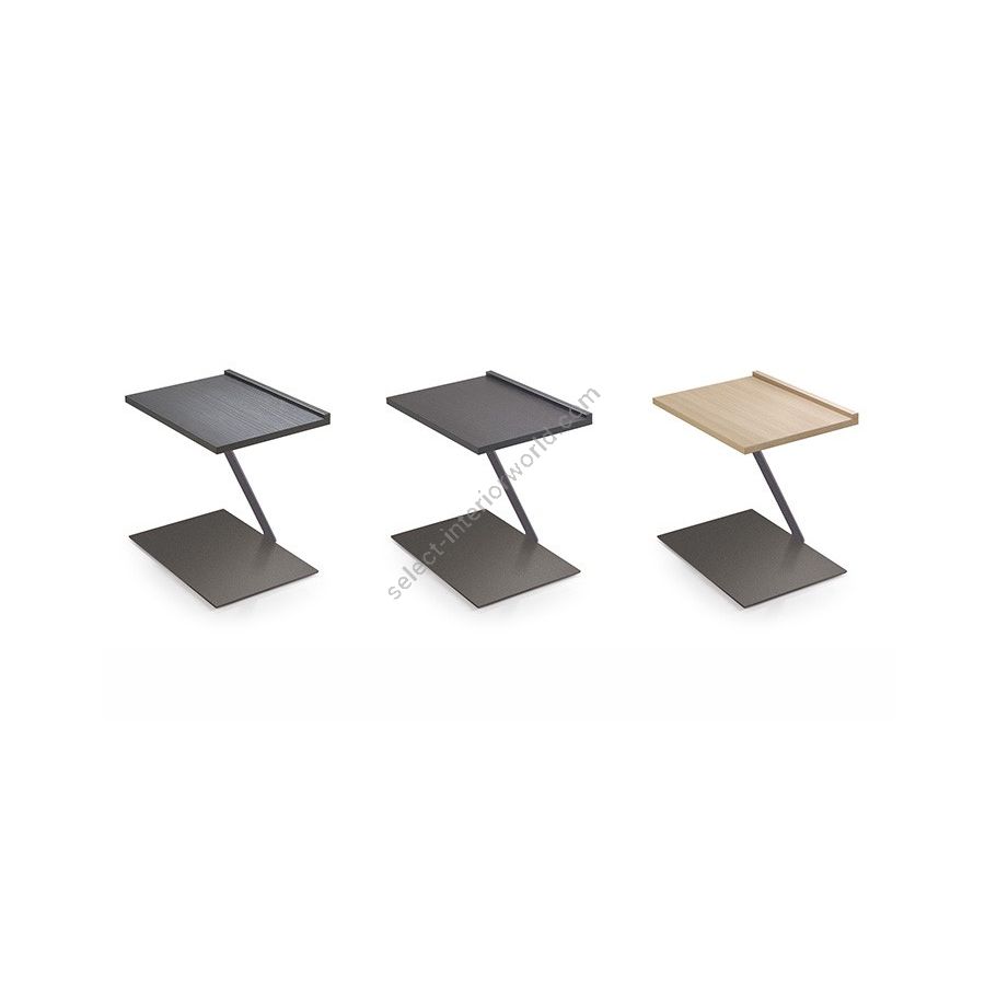 It is a versatile object that can be used as a base for many domestic situations, with its design based on a wooden top resting on a solid metalsupport available in different finishes and designed to match any sofa while taking up as little space as possible.